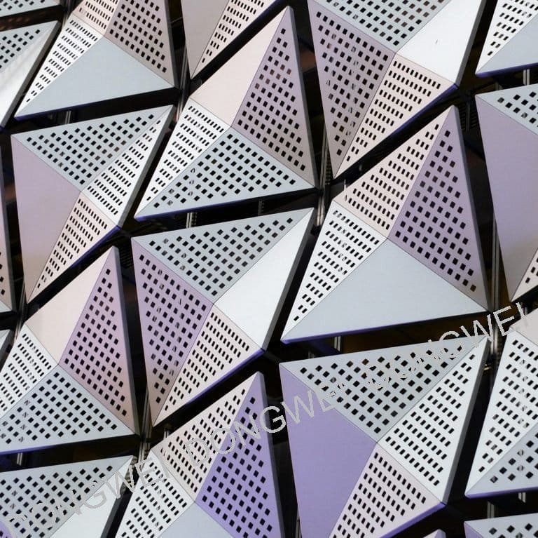 Aluminum veneer can be processed into various specifications, including flat panels, double-curved panels, and irregular-shaped panels. After forming, they undergo surface treatment and can be coated with fluorocarbon, acrylic, or powder coatings, allowing for a wide range of color choices. Widely used in both interior and exterior decoration applications.